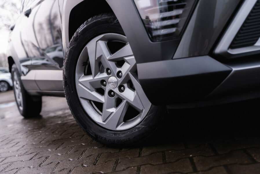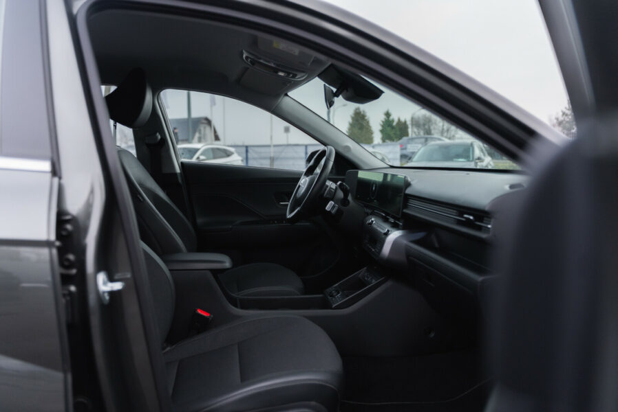 Airbag 6 sztuk (poduszki czołowe kierowcy i pasażera, boczne poduszki – przód, kurtyny powietrzne) Automatyczne włączanie świateł Czujnik ciśnienia w oponach Czujniki odległości przy parkowaniu – tył DBC – system kontroli zjazdu Dwupoziomowa podłoga bagażnika Fotel kierowcy z manualną regulacją wysokości Gniazdo 12V Gniazdo AUX Gniazdo USB HAC – system kontroli podjazdu Immobilizer Instalacja radiowa + 6 głośników Interfejs Bluetooth z funkcją rozpoznawania głosu Kierownica i drążek biegów skórzane Kierownica wielofunkcyjna Klamki zewnętrzne w kolorze nadwozia Klimatyzacja automatyczna Kolumna kierownicy z manualną regulacją położenia Komputer pokładowy z 3,5 calowym ekranem monochromatycznym LKAS – system utrzymania toru jazdy Lakier metaliczno-perłowy Galactic Grey Lusterka boczne ustawiane elektrycznie Lusterka boczne w kolorze nadwozia Lusterka boczne ze zintegrowanymi kierunkowskazami Lusterka boczne, podgrzewane Oświetlenie bagażnika Pakiet 5-lat usług assistance Pakiet gwarancji 5-letni bez limitu kilometrów Przedni podłokietnik ze schowkiem Radio z RDS, 5 cali z ekranem mono Relingi dachowe Roleta przestrzeni bagażowej Schowek na okulary System Stop-Go System kontroli poziomu uwagi kierowcy (DAA) Szyby regulowane elektrycznie, przód i tył Tapicerka materiałowa Tempomat z organicznikiem prędkości Tylne drzwi z blokadą zabezpieczająca przed otwarciem przez dzieci ISOFIX, tył VDC (ESC/ESP) – systemy kontroli trakcji i stabilizacji pojazdu – Wspomaganie kierownicy – elektryczne (MDPS) Wyłącznik deaktywujący poduszkę powietrzną pasażera Zamek centralny z pilotem Zestaw do naprawy przebitej opony Światła do jazdy dziennej LED Światła przeciwmgielne