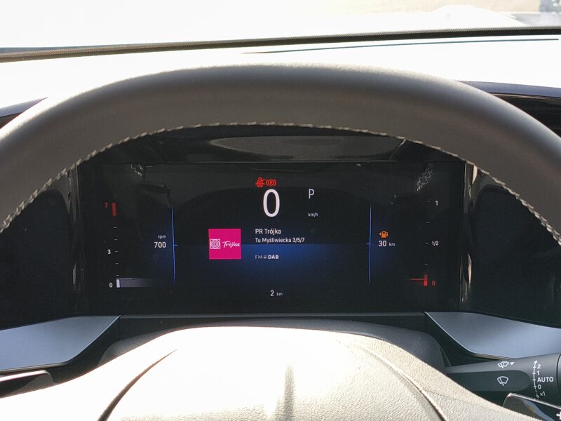 - Koło kierownicy sportowe pokryte skórą ekologiczną, spłaszczone u dołu, z przyciskami sterowania